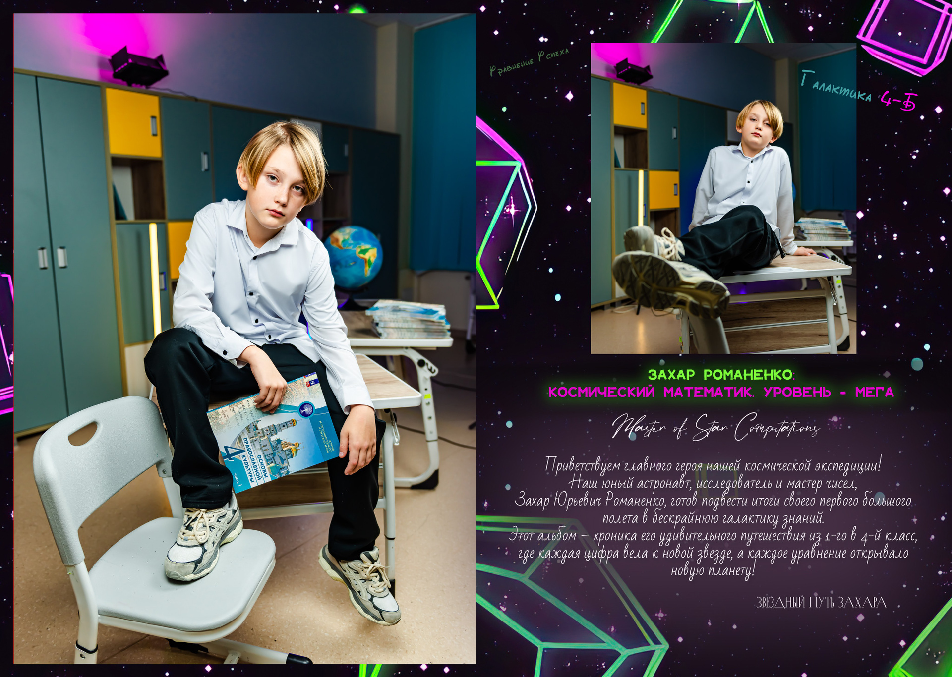 - Персональное приключение: Создайте альбом, который расскажет вашу уникальную историю класса и каждого ученика. Не упустите возможность создать свой уникальный «Космический» выпускной альбом!